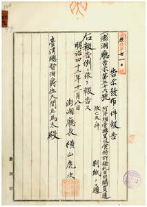 澎湖廳告示第三十六號阿片煙膏購買吸食特許鑑札並通帳亡失屆ノ件
