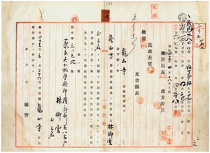 一六 台北庁大加蚋堡崔崢龍山寺街龍山寺管理人ノ林卿雲ト李孫蒲・信徒総代ノ黄殷朕ト呉采南ヨリ願出ノ龍山寺所属財産処分許可ノ件(指令第三〇三四号)