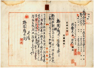 一六 桃園庁桃从堡桃園街鄭永南・同堡同街徐克昌・同堡北勢庄戴子麟・同堡南勢庄鄧欽鳳・海山堡大蕎崁街簡阿牛ヘ紳章付与方通達及ヒ紳章授与式挙行ニ付キ桃園庁長西美波ヨリ報告ノ件