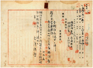 一一 宜蘭庁管内ノ羅東区庄長陳純精・二結区庄長張俶南・清水溝区庄長郭奠邦・紅水溝区庄長紅錦華・浮洲区庄長陳抜英・叭哩沙区庄長林維新ヨリ出願ノ羅東公学校叭哩沙分校設立認可ノ件(指令第二〇五五号)