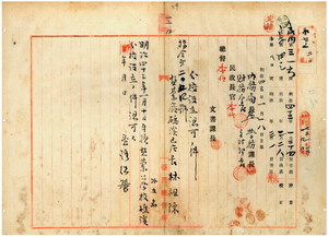 一二 宜蘭庁管内ノ宜蘭区街庄長林沢蔡・内員山区庄長陳朝西・外員山区庄長陳朝鏘・民壮囲区庄長李樹森・四囲区庄長呉舜年・礁渓区庄長林祖陳ヨリ出願ノ宜蘭公学校礁渓分校設立認可ノ件(指令第二〇五四号)