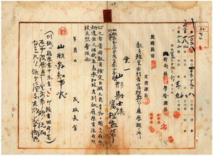 二〇 山形県新庄尋常高等小学校訓導富樫惣次郎ヘ台湾小学校本科正教員免許状教員無試験検定出願ニ付キ教員免許状授与ノ件