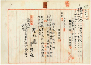 八 台北庁甲種学事講習会講習員枋橋公学校雇李讃生ノ台湾公学校訓導無試験検定出願ニ付キ教員免許状授与ノ件
