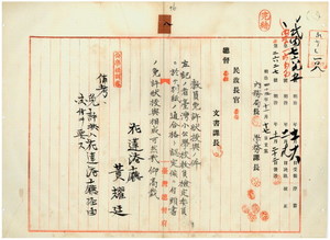 八 水尾公学校雇黄耀廷ノ台湾公学校訓導無試験検定出願ニ付キ教員免許状授与ノ件