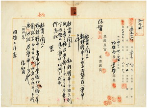 一五 嘉義庁長北原種忠及ヒ津田毅一・鳳山庁長横山虎次・蕃薯リョ庁長石橋亨・恒春庁長武藤針五郎・台湾総督府女学校長尾田信直・台湾総督府中学校長本荘太一郎・台南庁長松木茂俊・阿緱庁長佐藤謙太郎ヨリ稟申ノ教育ニ関スル勅語謄本奉戴及奉読式挙行済報告ノ件