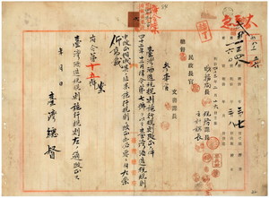 六 台湾酒造税規則施行規則改正ノ件並ニ明治四〇年一〇月府令第八三号台湾白咤紅咤及麹取締規則ヲ廃止ス(府令第一五号)
