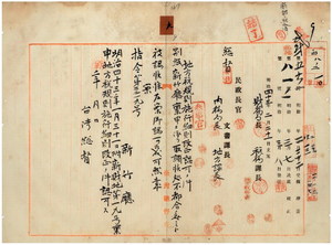 九 新竹庁長家永泰吉郎ヨリ認可方禀申ノアリタル台湾地方税規則施行細則改正方ニ付キ疑義アリタルニヨリ再調査方照会並ニ明治四三年二月一〇日付訴財地第一九ノ二号ヲ以テ提出サレタル訂正案ニ付キ認可ノ件(指令第二二一九号)