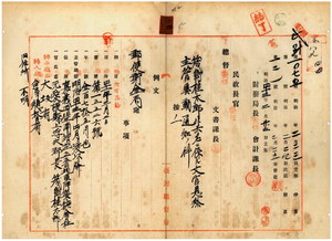 二五 元愛媛県上浮穴郡長筬島桂太郎・元台湾総督府技手浜松順正・元同府監獄監吏園田豊彦・元臨時台湾工事部書記中島重三郎・同安江正直・元鳳山庁属森頼治・台湾総督府通信属牟田亘ニ係ル文官恩給主管異動ニ付キ郵便貯金局ヘ通知ノ件