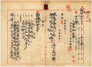 二八 元蕃薯リョ庁属大島善次・元台中庁属石橋定規ニ係ル文官恩給証書新規下賜ニ付キ郵便貯金局ヘ通知ノ件