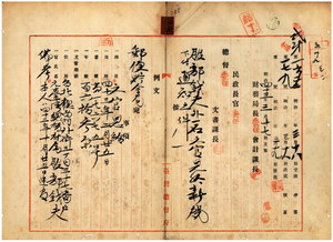 三四 元台湾総督府属服部湮夫ト元台南庁属藤井米八郎ニ係ル文官恩給証書新規下付ニ付キ郵便貯金局ヘ通知ノ件