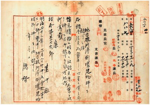 六 台中庁長枝徳二ヨリ稟申ノ台中庁所管ノ地方税所属倒壊建物材料払下方認可ノ件(指令第五二七六号)