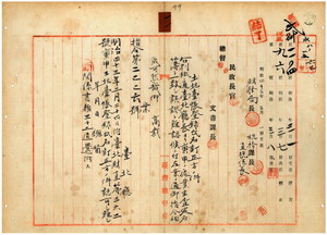 一一 台北庁長井村大吉ヨリ稟申ノ芝蘭一堡渓洲底庄土名浮洲仔ノ業主ヲ王夕カラ王友ヘ、三貂堡石壁坑庄ノ業主ヲ林祥カラ林清祥ヘ、同堡槓仔リョ庄土名内リョノ業主ヲ蕭阿聖カラ蕭阿成ヘ及ヒ蕭阿代カラ蕭大魚ヘ並ニ蕭阿古カラ蕭阿科ヘ、石碇堡郷長厝庄土名過港ノ業主ヲ陳福カラ陳水福ヘ、文山堡阿柔坑庄土名土巷ノ業主ヲ陳玖カラ陳清談ヘ、同堡青潭庄土名青潭街ノ業主ヲ周榜カラ周本ヘ、石碇堡社後庄土名社後頂ノ業主ヲ張九カラ張狡ヘ、大加蚋堡朱厝崙庄ノ業主ヲ沈神助カラ沈租ヘ、芝蘭一堡新里族庄土名洲尾ノ業主ヲ沈神助カラ沈租ヘノ土地台帳登録氏