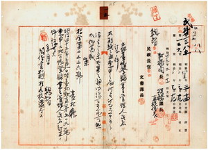 一五 台北庁長井村大吉ヨリ稟申ノ芝蘭二堡和尚庄南港仔庄ノ業主ヲ陳猪英カラ陳猪嬰ヘ・大加蚋堡崔崢頂新街ノ業主ヲ呉開基カラ呉開枝ヘ・同堡中崙庄及ヒ同堡大稲花日新街ノ業主ヲ邱張純仔カラ邱張氏純仔ヘ・文山堡松柏崎庄土名耳空亀ノ業主ヲ王林カラ王元琳ヘ・同堡同庄土名ノ業主管理ヲ張水盛カラ張水性ヘ・大加蚋堡崔崢久寿街ノ業主管理ヲ楊氏罔凉カラ楊氏罔ヘ・同堡崔崢歓慈市街ノ業主ヲ林欽カラ林鐘欽ヘ・石碇堡水返脚街土名水返脚ノ業主ヲ余成佳カラ余成家ヘノ土地台帳業主及管理人氏名訂正方認可ノ件(指令第二三三六号)