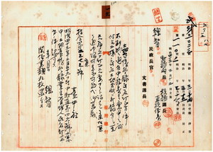 一六 台中庁長枝徳二ヨリ稟申ノ大肚下堡大肚庄ノ業主ヲ趙秤カラ趙秤ヘ、東螺東堡海豊崙庄ノ管理ヲ朱帝カラ来定ヘ・二林下堡周厝崙庄ノ業主ヲ呉屋猪カラ呉猪ヘ・東螺西堡崙仔庄土名崙仔ノ業主ヲ呉悪猪カラ呉猪ヘ・東螺東堡独鰲庄土名崙仔尾ノ業主ヲヱ亀カラヱ阿枝ヘ・東螺西堡連交厝庄ノ業主ヲ許呈カラ許程ヘ及ヒ許騰カラ許程ヘ・同堡課頭庄ノ業主ヲ許呈カラ許程ヘノ土地台帳業主及管理人氏名訂正方認可ノ件(指令第二三七三号)