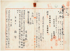 三 宜蘭庁長小松吉久ヨリ稟申ノ宜蘭庁民壮囲堡過嶺庄ノ業主李火万カラ李火万ヘ、同堡公館庄土名公館ノ業主林楨カラ林朝楨ヘ、浮洲堡叭哩沙庄土名破布烏ノ業主偕阿九カラ偕九仔ヘ、四囲堡武暖庄ノ業主林連桂カラ林連貴ヘ、本城堡宜蘭街土名巽門ノ業主蔡来伝カラ張蔡来伝ヘ、同堡同街土名乾門・員山堡珍仔満力庄土名擺厘・二結堡二結庄ノ業主陳竹浦ト陳蒲カラ陳徳蒲ヘ土地台帳業主氏名訂正方認可並ニ浮洲堡叭哩沙庄土名破布鳥ノ業主偕叶花カラ偕嗄花ヘノ変更不認可ノ件(指令第二三九三号)
