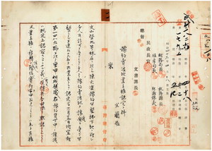 一一 宜蘭庁長小松吉久ヨリ稟申ノ文山堡九崇林庄ニ於ケル陳火雅予約開墾払下地ニシテ同人及ヒ許可ヲ受ケスシテ同人ヨリ予約売渡地ノ譲渡ヲ受ケ開墾シタル王連外一六名[未記載]ヲ共業主トシテ業主権認定方ニ関シ通達ノ件