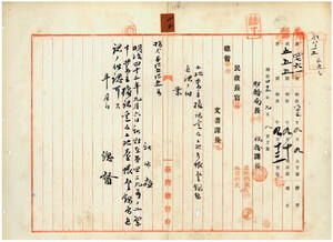 一三 新竹庁長家永泰吉郎ヨリ稟申ノ同庁苗栗二堡梅樹脚庄ヲ鄭天平・陳桐漁ノ畑トシテ開墾地業主権認定及土地台帳ニ登録方追認認可ノ件(指令第四五四五号)