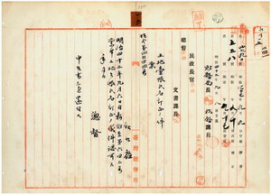 一五 新竹庁長家永泰吉郎ヨリ稟申ノ同庁竹北二堡和興庄ノ業主ヲ范阿光カラ范光ヘ・師東上堡罩蘭庄ノ業主ヲ詹査某カラ詹査母ヘ、同堡同庄ノ業主ヲ詹坤鎮カラ詹坤鼎ヘ、竹北一堡南埔庄土名大份林ノ業主ヲ陳阿伝カラ陳立伝ヘノ土地台帳登録氏名訂正方認可ノ件(指令第四五四四号)