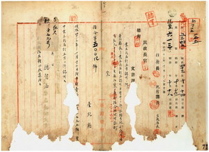 一 台北庁長井村大吉ヨリ稟申ノ同庁石碇堡什份リョ庄土名石碇仔ノ業主ヲ林雲程カラ林雲騰ヘ、芝蘭三堡小基隆新庄土名埔頭坑ノ業主ヲ江瑞元カラ江瑞源ヘノ土地台帳登録氏名訂正方認可ノ件(指令第五〇〇四号)