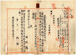 一四 南投庁長久保通猷ヨリ稟申ノ同庁北投堡北投埔庄ノ業主ヲ林漏達カラ林炎木ヘ及ヒ林連火カラ林昌高ヘ、武東堡頂新厝庄ノ業主ヲ鄭武成カラ鄭武松ヘ及ヒ陳三カラ陳蔴ヘ、同堡弓鞋庄ノ業主ヲ陳阿火カラ陳火ヘノ土地台帳登録氏名訂正不認可ノ件(指令第五三七六号)