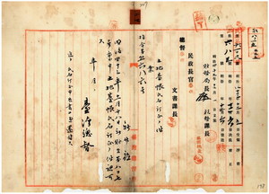 二四 新竹庁長家永泰吉郎ヨリ稟申ノ同庁竹南一堡営盤辺庄土名山リョ及ヒ同堡崎頂庄ノ業主ヲ呉土城カラ林呉土城ヘ、同堡営盤辺庄土名山リョノ業主ヲ林土城カラ林呉土城ヘノ土地台帳登録氏名訂正方認可ノ件(指令第五六八六号)
