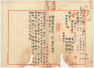 一二 斗六郵便局長大津延吉ノ稟申ニ依リ林内郵便受取所ニ於テ電報配達事務取扱ノ件(訓令第五号)