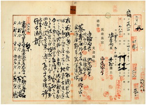 八 蔡寿石・蔡実海・蔡実魁ヨリ出願ノ植林ノ為メ台中庁燕霧上堡橋仔頭庄土名湾仔口宅内山ノ官有原野年期貸渡願許可ノ件(指令第四九五三号)