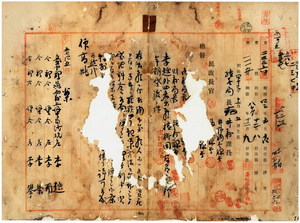 一 李枷・李而・李栄・李攀・李伝ヨリ出願ノ植林ノ為メ台中庁燕霧上堡白沙坑庄向天山ノ官有原野年期貸渡願許可ノ件(指令第五七四五号)