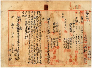 四 林戊巳ト林維翰ヨリ出願ノ植林ノ為メ台中庁猫羅堡阿罩庄土名阿罩霧ノ官有原野年期貸渡願許可ノ件(指令第五七九九号)