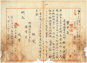 一 台湾総督府民政部殖産局長宮尾舜治ノ内申ニ依リ日英博覧会用務ノ為メ英国ヘ差遣サレル台湾総督府技師福留喜之助ニ製茶販路調査ヲ命シ英国ヘ出張中手当金ヲ支給ス