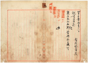 三 台湾総督佐久間左馬太ノ内議ニ依リ元台湾総督府通信局長鹿子木小五郎ニ在職中事務格別勉励ニ付キ一時金ヲ賞与ス