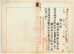 一三 台湾総督府鉄道部技師新元鹿之助ノ台湾総督府鉄道部長代理ヲ免シ、台湾総督府鉄道部事務官服部仁蔵ニ台湾総督府鉄道部長大島久満次不在中ノ代理ヲ命ス
