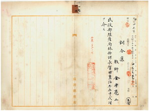 一七 台湾総督府民政部殖産局長代理峡謙斉ノ具申ニ依リ台湾総督府技師金平亮三ニ民政部殖産局林務課長賀田直治不在中ノ代理ヲ命ス