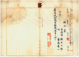 一一 台湾汽船職員懲戒委員長持地六三郎ノ内申ニ依リ台湾総督府民政部通信局庶務課長兼海事課長台湾総督府事務官鈴木三郎及ヒ民政部通信局郵務課長台湾総督府事務官斎藤愛二ニ台湾汽船職員懲戒委員ヲ命ス