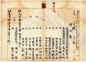 一五 台湾総督府民政部殖産局長宮尾舜治ノ具申ニ依リ台湾総督府土木部技師長尾半平・台湾総督府技師高木友枝・台湾総督府参事官山田新一郎・台湾総督府民政部殖産局長宮尾舜治・台湾総督府蕃務総長大津麟平・台湾総督府鉄道部技師新元鹿之助・台湾総督府民政部通信局長持地六三郎・台湾総督府民政部内務局長川村竹治・台湾総督府事務官峡謙斉・台湾総督府事務官賀来佐賀太郎・台湾総督府参事官楠正秋・台湾総督府参事官片山秀太郎・台湾総督府参事官小林音八ニ移民事務委員会委員ヲ命シ、台湾総督府技師野呂寧・台湾総督府技師賀田直治ニ移民事務委