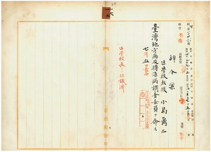 一六 台湾地方病及伝染病調査委員長台湾総督府民政長官大島久満次ノ内申ニ依リ台湾総督府医学校教授小島∈二ニ台湾地方病及伝染病調査委員ヲ命ス