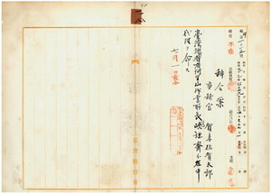 一八 台湾総督府阿里山作業所長心得峡謙斉ノ内申ニ依リ台湾総督府事務官賀来佐賀太郎ニ台湾総督府阿里山作業所長心得峡謙斉不在中ノ代理ヲ命ス