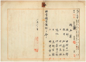 七 台湾総督府民政部殖産局長宮尾舜治ノ内申ニ依リ台湾総督府技師中村十一郎、台湾総督府技手ノ加藤宗三・古川良雄、台湾総督府嘱託ノ伊藤貞次郎・尾崎宗隆・田中市二ニ林業講習講師ヲ命ス