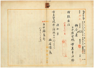 一四 台中庁長枝徳二ノ内申ニ依リ実母死亡ニ付キ忌服中ノ台中庁警視市来半次郎ニ除服出仕ヲ命ス