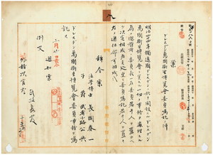 八 在独逸国大使館二等書記官長岡春一及ヒ外交官補武者小路公共ニドレスデン万国衛生博覧会委員事務ヲ嘱託ス