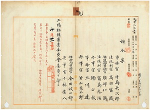 九 台湾総督府事務官手島兵次郎・台湾総督府法院判官高田富蔵・台湾総督府鉄道部事務官服部仁蔵・台湾総督府法院判官富島元治・台湾総督府参事官楠正秋・台湾総督府事務官立川連・台湾総督府参事官片山秀太郎・臨時台湾糖務局事務官金田政四郎・台湾総督府参事官小林音八ニ工場胎権審査委員会委員ヲ命ス