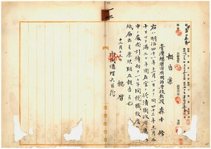 一二 台湾総督府国語学校長本荘太一郎ヨリ進達ノ在官ノ儘福建師範学堂ヘ就職中ノ台湾総督府国語学校教授森本修ノ清国政府応聘期間延長ニ付キ内閣総理大臣ヘ報告ノ件