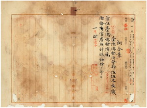 一 台湾総督官房統計課長水科七三郎及ヒ台湾総督府民政部内務局長川村竹治ノ内申ニ依リ台湾総督府警部佐佐木長蔵ニ台湾総督府属ヲ兼任シ台湾総督官房統計課勤務ヲ命ス