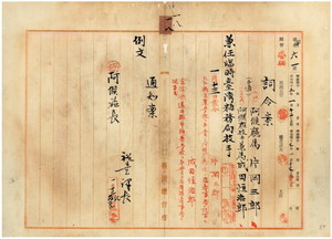 一八 臨時台湾糖務局長代理峡謙斉ノ内申ニ依リ阿緱庁属片岡三郎及ヒ阿緱庁技手兼属成田恒治郎ヲ臨時台湾糖務局技手ニ兼任ス