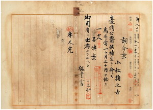 二二 台湾総督府民政部内務局長川村竹治ノ内申ニ依リ元プラタス島医務室主任小松猪之吉ニ台湾公医候補生ヲ命ス