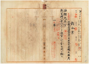 三二 休職台湾総督府三等郵便局長国生照彦ノ辞職願ニ依リ本官ヲ免シ退官一時金ヲ給ス