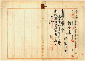一九 台湾総督府民政部内務局長川村竹治ノ内申ニ依リ元台中医院勤務ノ下村宏次郎ニ台湾公医ヲ命シ南投庁埔里社在勤ヲ命ス