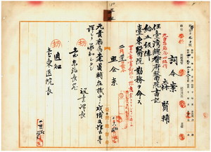 三三 台東医院長事務取扱門馬健也ノ内申ニ依リ元台東庁属森賢輔ヲ台湾総督府医院書記ニ任シ台東医院勤務ヲ命ス