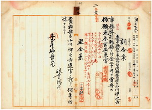 三七 台中庁技手兼臨時台湾糖務局技手小川伊之吉ハ麻剌里亜ニ罹リ職ニ堪ヘサル旨ヲ以テ辞職願ニ依リ事務格別勉励ニ付キ一時金ヲ賞与シ本官並ニ兼官ヲ免ス