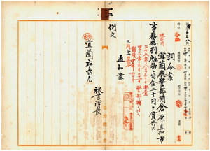 一二 宜蘭庁長小松吉久ノ内申ニ依リ宜蘭庁警部補倉原嘉市ニ事務格別勉励ニ付キ一時金ヲ賞与ス